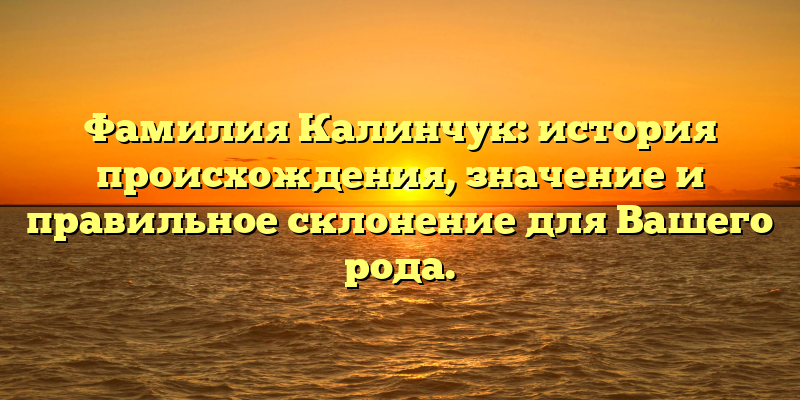 Фамилия Калинчук: происхождение, значение и склонение для Вашей родословной – все, что нужно знать