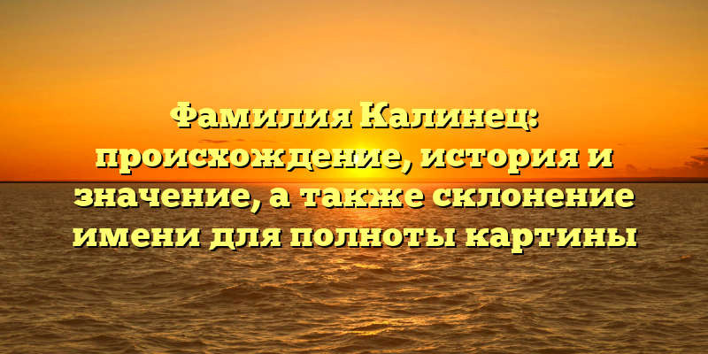 - Фамилия Калинец: история происхождения и значения, а также правильное склонение имени для фамилии Калинец