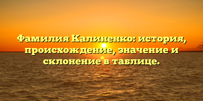 - Фамилия Калиненко: происхождение и значение, склонение в таблице и уникальная история семьи