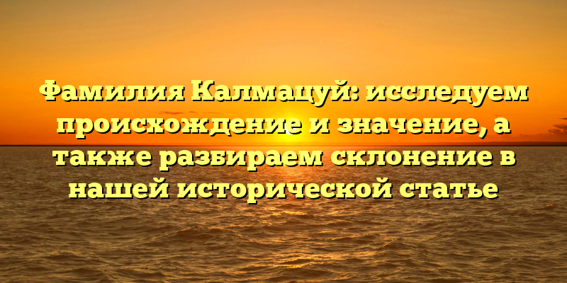 - История и значения фамилии Калмацуй: изучаем происхождение и склонение в нашей исторической статье