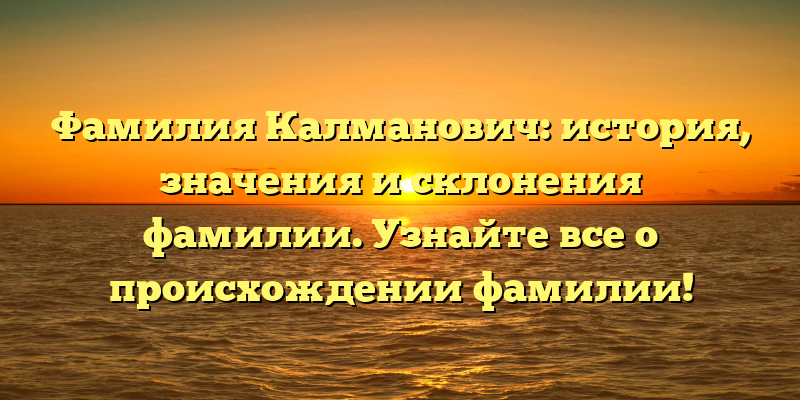 - Раскрываем тайны фамилии Калманович: история, значения и склонения – все, что вы хотели знать о происхождении этой фамилии!