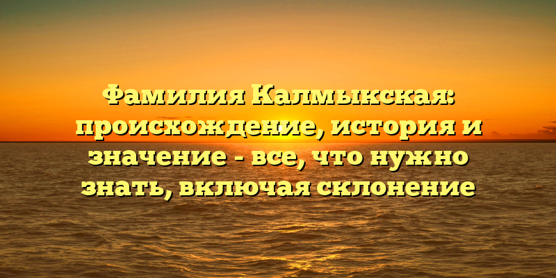 - Полное руководство по фамилии Калмыкская: происхождение, история, значение и правильное склонение