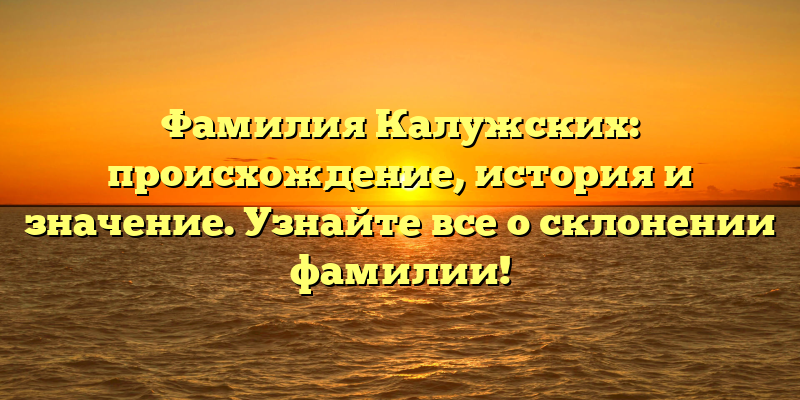 Фамилия Калужских: происхождение, история и значение — полное руководство по склонению и правописанию!