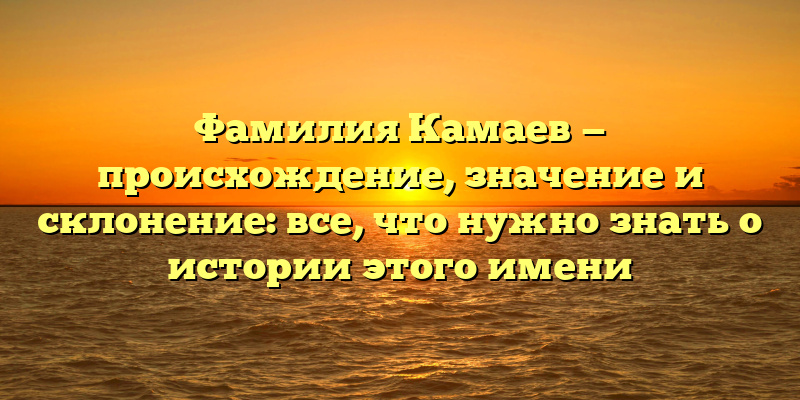 Фамилия Камаев — это достаточно распространенная фамилия в России. Если вы задумывались о том, что она значит, где происходит и по каким правилам ее нужно склонять, то вы попали в нужное место.