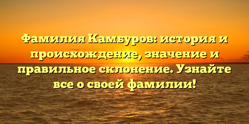 Познайте историю и происхождение фамилии Камбуров, ее значение и правильное склонение в нашей увлекательной статье!