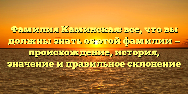 - Фамилия Каминская: история происхождения, значение и правила склонения — полное руководство для исследователей генеалогии
