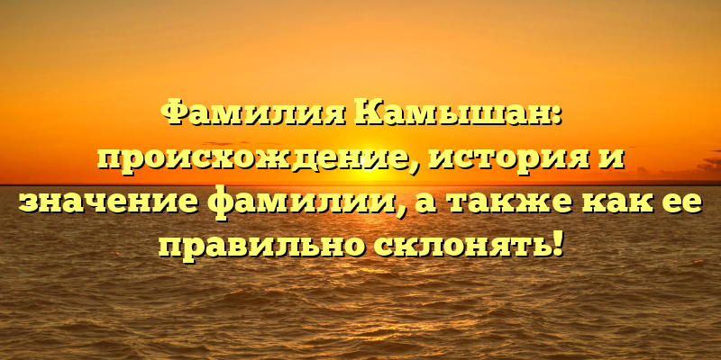 - Фамилия Камышан: история, происхождение и правильное склонение — всё, что нужно знать!
