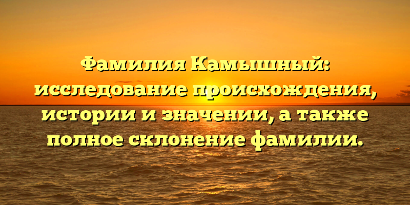 Фамилия Камышный: исследование происхождения и значения, исторические корни и полное склонение для уникального прозвучания