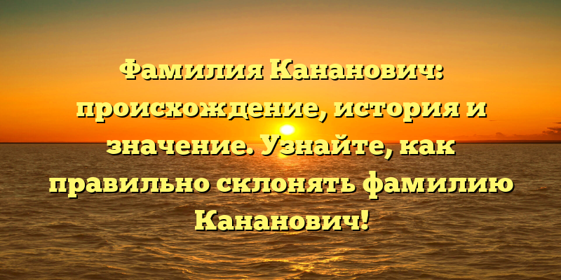 Фамилия Кананович: история, происхождение и правильное склонение — все, что нужно знать!