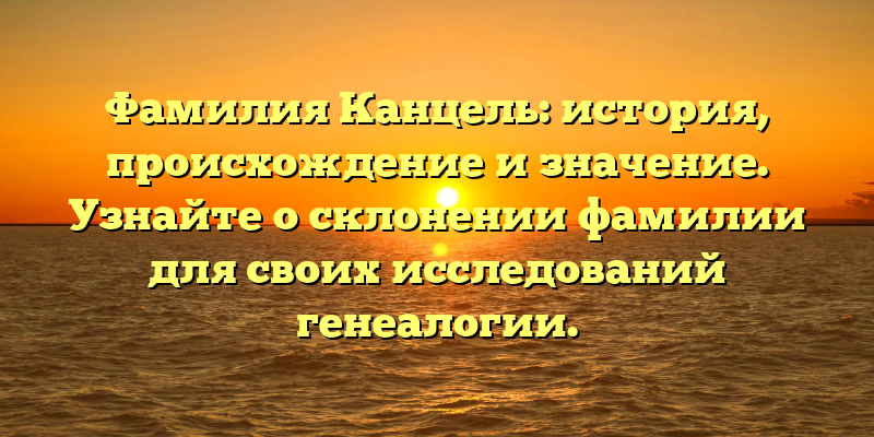 - Фамилия Канцель: происхождение, история и склонение – все, что нужно знать генеалогам