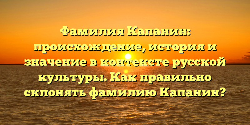 Капанин: история и значение фамилии в контексте русской культуры. Узнайте, как правильно склонять фамилию Капанин.