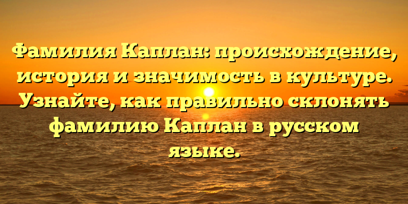 - Фамилия Каплан: история, происхождение и значение в культуре + грамотное склонение на русском языке