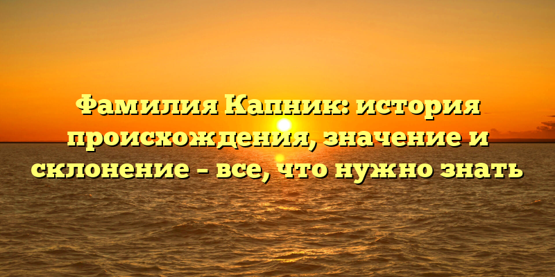 Фамилия Капник: откуда происходит, что значит и как склоняется — подробнее о ее истории и значении.