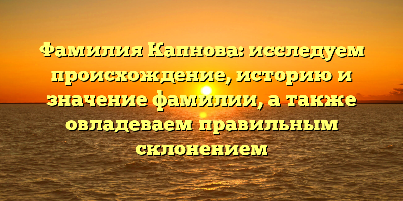 Открываем тайны фамилии Капнова: происхождение, история и значения, и научимся правильно склонять.