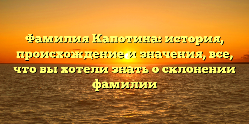 - Раскрываем тайны фамилии Капотина: история, происхождение и значения, а также правила склонения!