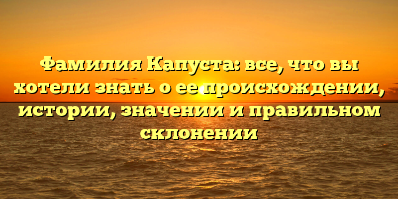 - Фамилия Капуста: глубокое исследование происхождения, значения и правильного склонения для вашей фамилии