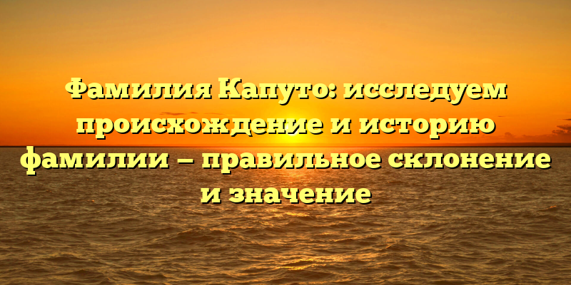 - Раскрываем тайны происхождения фамилии Капуто: правильное склонение и значение в одной статье