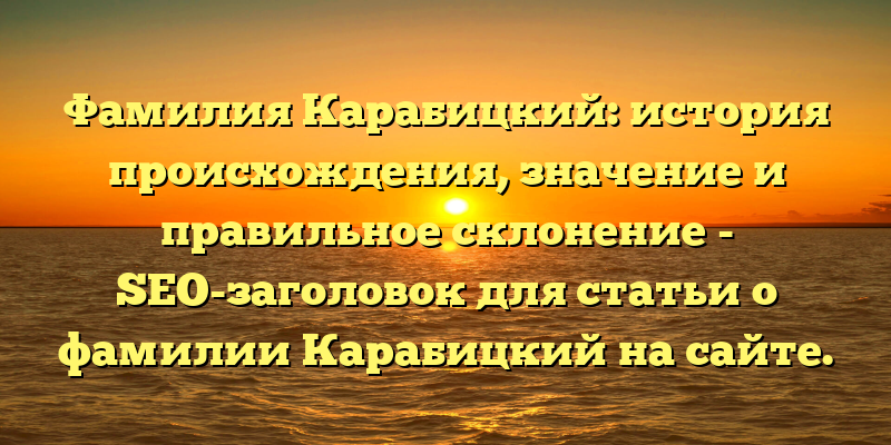 - Фамилия Карабицкий: происхождение, значение и правильное склонение – история рода Карабицких