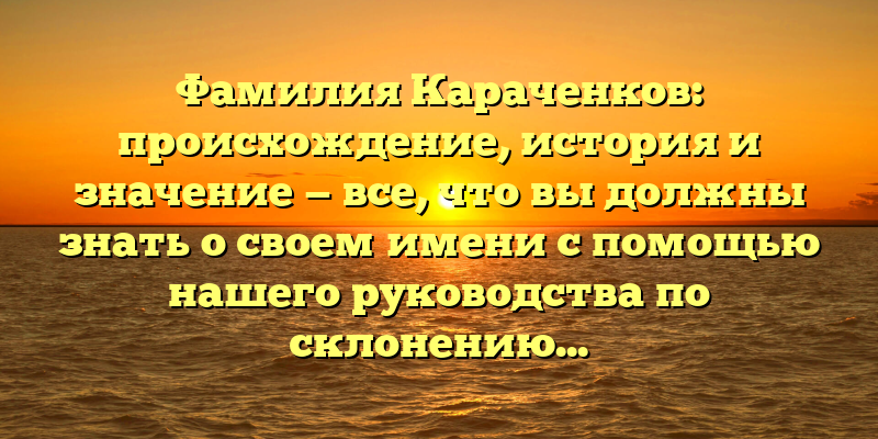 - От родословной до грамматики: узнайте все о фамилии Караченков в нашем руководстве по склонению
