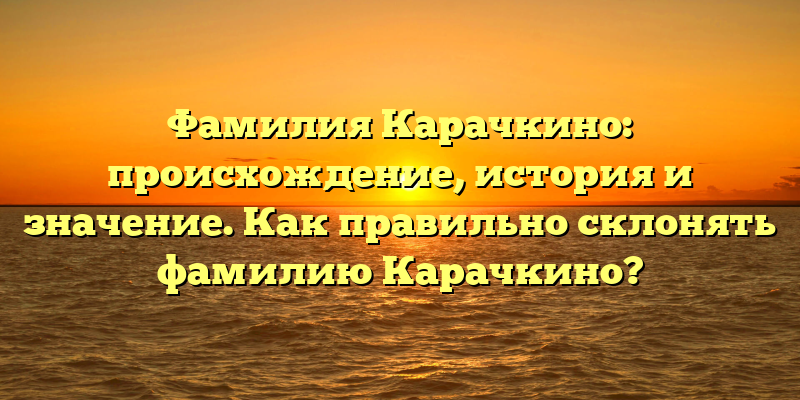 - Фамилия Карачкино: история происхождения и значение, правила склонения и генеалогические особенности