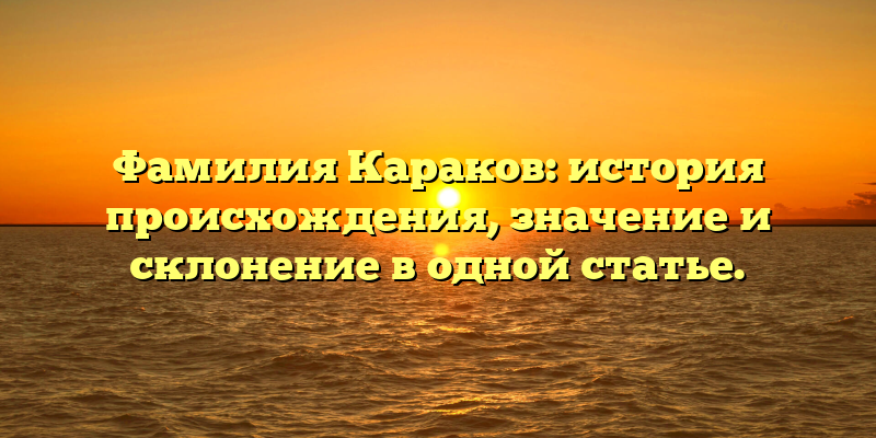 Фамилия Караков: происхождение, значение и склонение — все, что вы хотели знать в одной статье