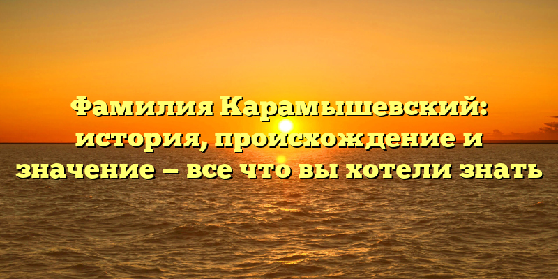 - Фамилия Карамышевский: происхождение, история и значение — полное руководство для любопытных исследователей