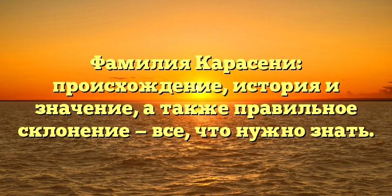 - Фамилия Карасени: история происхождения, значения и правильное склонение — глубокое погружение в эту уникальную фамилию.