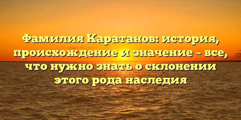 Изучаем фамилию Каратанов: происхождение, история и уникальное значение.