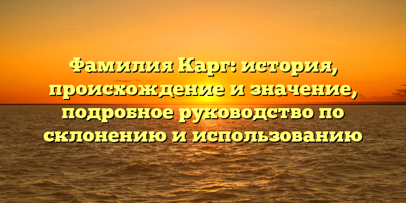 - Исследование фамилии Карг: происхождение, история и советы по корректному использованию