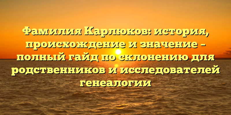 - Фамилия Карлюков: история, происхождение и значение – практическое руководство для родственников и генеалогов