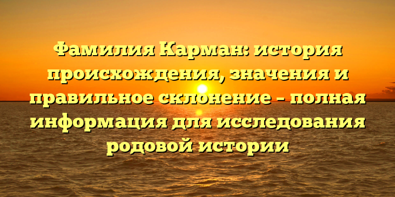 Исследуйте свои корни: полная информация о фамилии Карман, ее происхождении, значении и правильном склонении.