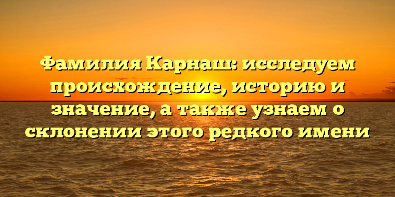 - Фамилия Карнаш: происхождение, история, значение и склонение – полный гид для редкого имени