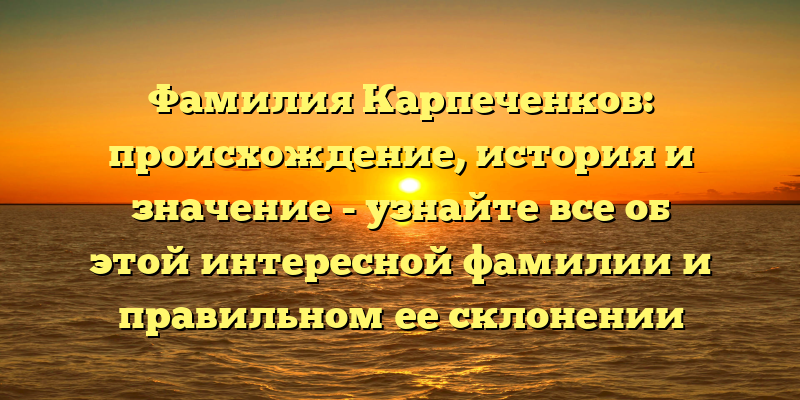 Фамилия Карпеченков: происхождение, история и значение, а также правильное склонение – подробный обзор для любознательных