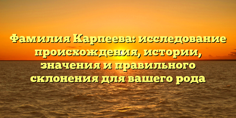 Фамилия Карпеева: все, что вы хотели знать о происхождении, истории и правильном склонении для вашего рода, в одной статье!