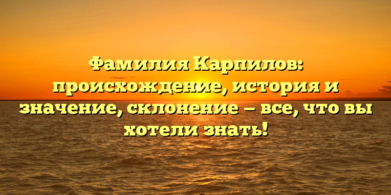 - История и значения фамилии Карпилов: открытие тайн происхождения и правильное склонение