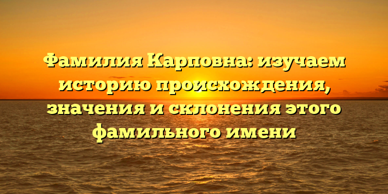 Фамильное имя Карповна: полный гид по истории, значениям и склонениям