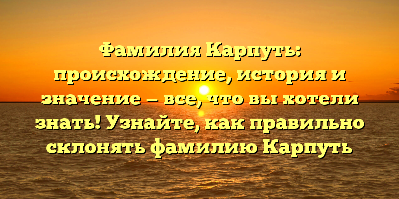 - Фамилия Карпуть: история происхождения и значение. Как правильно склонять фамилию Карпуть и что она означает.
