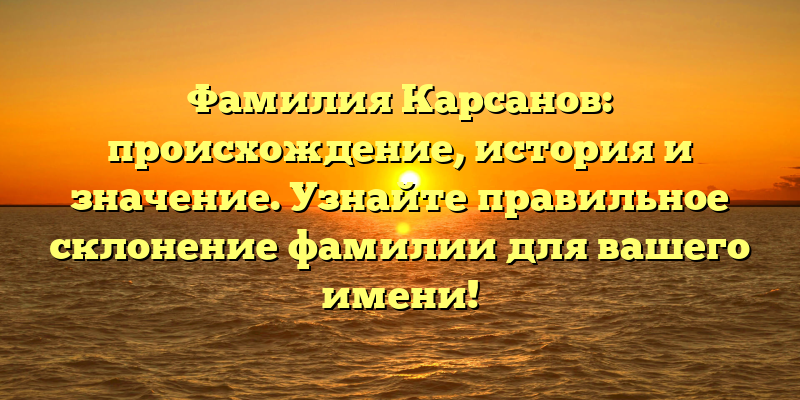 - Раскрываем тайны фамилии Карсанов: происхождение, история и применение склонения – полезная информация для вашего имени!