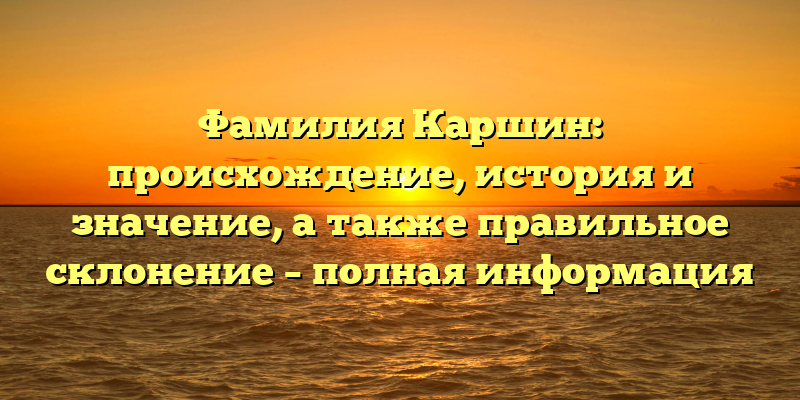 Исследуем происхождение и историю фамилии Каршин: правильное склонение и значение в подробностях