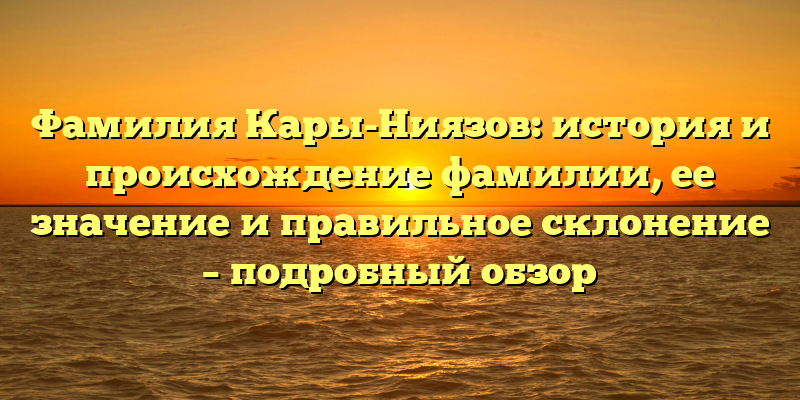 - Фамилия Кары-Ниязов: исследуем историю и происхождение, разбираем правильное склонение и значение этой фамилии — полный обзор