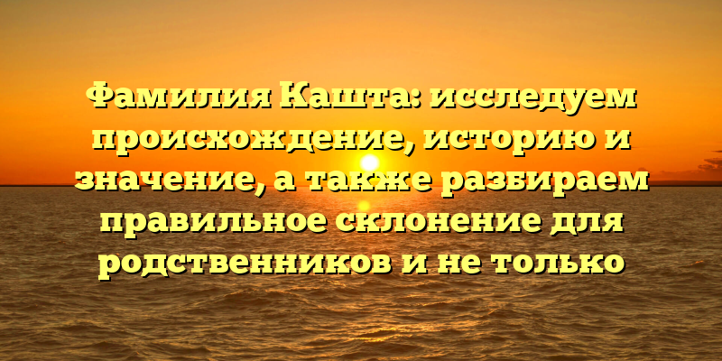 - Фамилия Кашта: происхождение, история и значение, а также правильное склонение для родственников и не только — все, что нужно знать