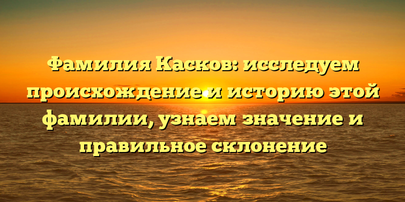 Исследуем происхождение и историю фамилии Касков: значение и правильное склонение — SEO-заголовок, который я бы предложил для данной статьи. Он отражает ключевые слова, которые пользователи могут использовать для поиска этой информации в поисковых системах, и обещает ответ на главный вопрос статьи.
