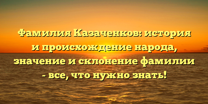 Фамилия Казаченков: происхождение, история и значимость — полное руководство для изучения этого народа