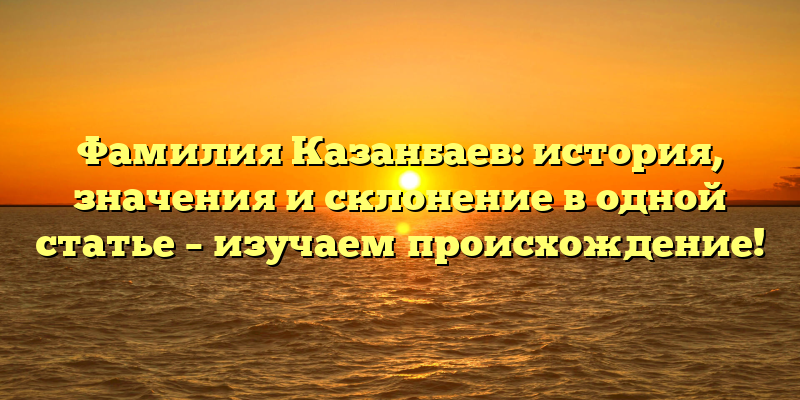 В данной статье мы подробно изучим историю, значения и склонение фамилии Казанбаев. Читайте, чтобы узнать больше!