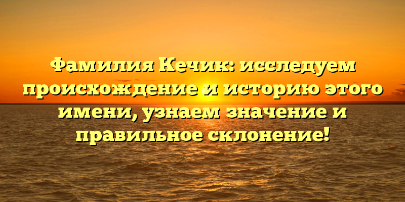 - Раскрываем тайны фамилии Кечик: происхождение, история и правильное склонение имени!