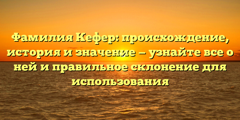 Фамилия Кефер: история, происхождение и правильное склонение для использования в наши дни