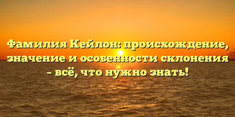 - Раскрытие тайн фамилии Кейлон: происхождение, значение и правильное склонение – необычайно интересно и полезно!