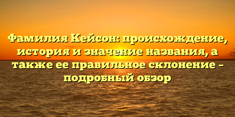 - Фамилия Кейсон: история, происхождение и правильное склонение — полный обзор
