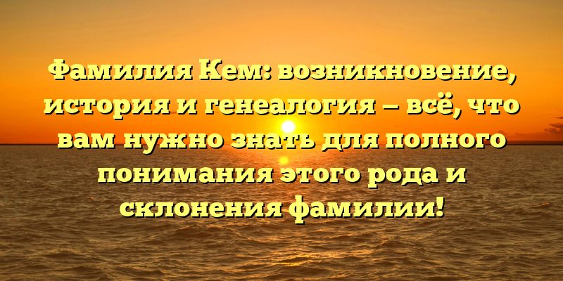 - Кем: история возникновения и генеалогия рода, а также секреты правильного склонения фамилии!