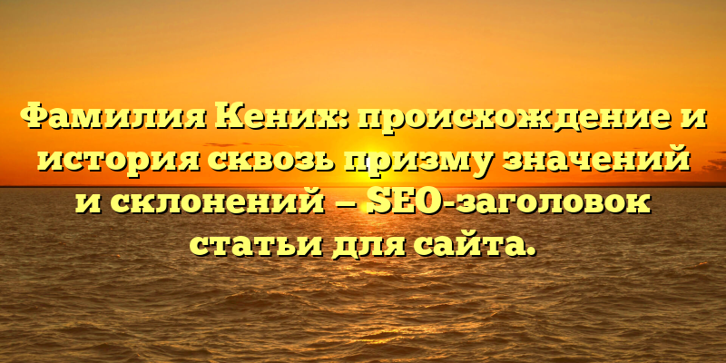 - Исследование происхождения и истории фамилии Кених: взгляд на значимость и изменения в склонениях — SEO-заголовок статьи для сайта.